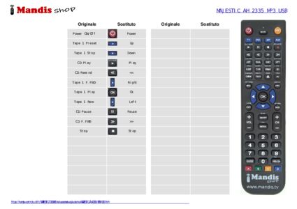 Inizio > Marche > Telecomandi MAJESTIC > Telecomando per MAJESTIC AH 2335 MP3 USB > Distribuzione interattiva dei tasti MAJESTIC AH 2335 MP3 USB
