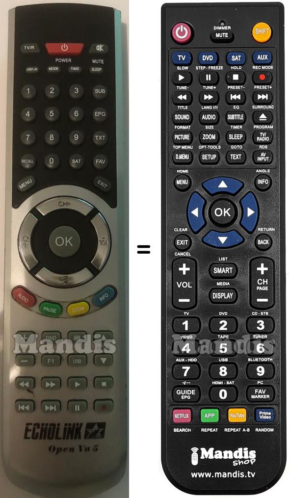 Questo telecomando sostituisce completamente il tuo Open Vu 5 e offre tutte le funzioni dell'originale.