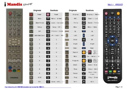 È incluso un documento per aiutarti a utilizzare facilmente il nuovo telecomando, indicando la corrispondenza dei pulsanti.