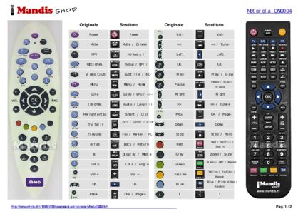È incluso un documento per aiutarti a utilizzare facilmente il nuovo telecomando, indicando la corrispondenza dei pulsanti.
