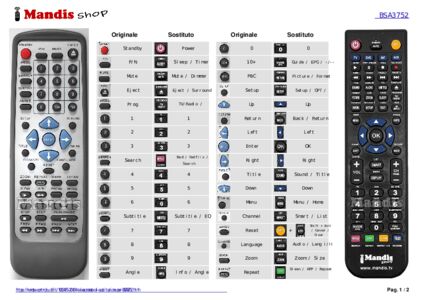 È incluso un documento per aiutarti a utilizzare facilmente il nuovo telecomando, indicando la corrispondenza dei pulsanti.