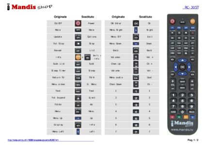 È incluso un documento per aiutarti a utilizzare facilmente il nuovo telecomando, indicando la corrispondenza dei pulsanti.