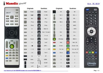 È incluso un documento per aiutarti a utilizzare facilmente il nuovo telecomando, indicando la corrispondenza dei pulsanti.