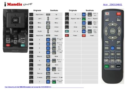 Di seguito, vi mostreremo la corrispondenza tra ciascun pulsante del telecomando originale e il pulsante che svolge la stessa funzione sul telecomando di sostituzione. In alcuni casi, potrebbe essere necessario premere il tasto SHIFT prima di premere un altro pulsante per eseguire determinate azioni. Queste funzioni aggiuntive sono spesso poco utilizzate e sono incluse per facilitare la comprensione del telecomando di sostituzione, o perché il telecomando originale ha più pulsanti rispetto al suo equivalente.