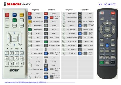 Di seguito, vi mostreremo la corrispondenza tra ciascun pulsante del telecomando originale e il pulsante che svolge la stessa funzione sul telecomando di sostituzione. In alcuni casi, potrebbe essere necessario premere il tasto SHIFT prima di premere un altro pulsante per eseguire determinate azioni. Queste funzioni aggiuntive sono spesso poco utilizzate e sono incluse per facilitare la comprensione del telecomando di sostituzione, o perché il telecomando originale ha più pulsanti rispetto al suo equivalente.