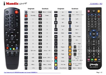 Questo telecomando sostituisce la maggior parte delle funzioni del tuo S 1000 HD-IRCI. Non è un telecomando universale, ma una copia con la maggior parte dei tasti e delle funzioni del tuo originale.