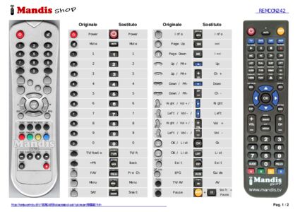 È incluso un documento per aiutarti a utilizzare facilmente il nuovo telecomando, indicando la corrispondenza dei pulsanti.
