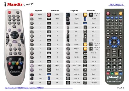 È incluso un documento per aiutarti a utilizzare facilmente il nuovo telecomando, indicando la corrispondenza dei pulsanti.