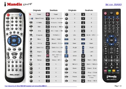 Di seguito, vi mostreremo la corrispondenza tra ciascun pulsante del telecomando originale e il pulsante che svolge la stessa funzione sul telecomando di sostituzione. In alcuni casi, potrebbe essere necessario premere il tasto SHIFT prima di premere un altro pulsante per eseguire determinate azioni. Queste funzioni aggiuntive sono spesso poco utilizzate e sono incluse per facilitare la comprensione del telecomando di sostituzione, o perché il telecomando originale ha più pulsanti rispetto al suo equivalente.