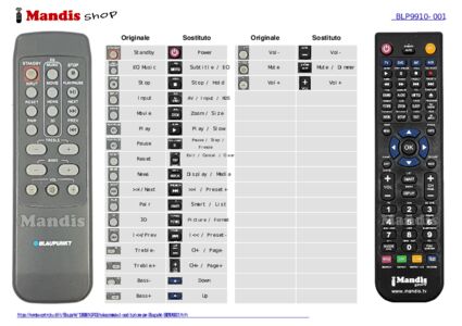 Questo telecomando sostituisce completamente il tuo BLP9910001 e offre tutte le funzioni dell'originale.