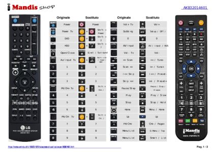 È incluso un documento per aiutarti a utilizzare facilmente il nuovo telecomando, indicando la corrispondenza dei pulsanti.