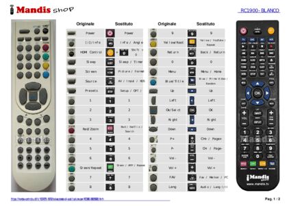 Questo telecomando sostituisce completamente il tuo RC1900 (30065008) e offre tutte le funzioni dell'originale.