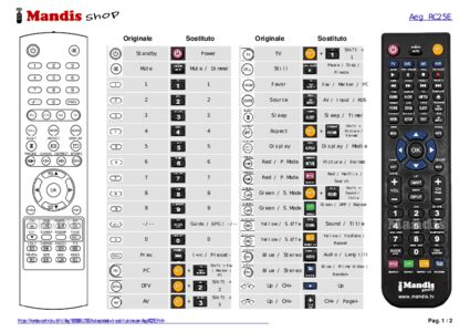 È incluso un documento per aiutarti a utilizzare facilmente il nuovo telecomando, indicando la corrispondenza dei pulsanti.