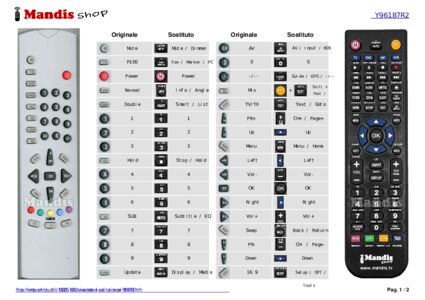 Questo telecomando sostituisce completamente il tuo Y96187R2 (GNJ0147) e offre tutte le funzioni dell'originale.