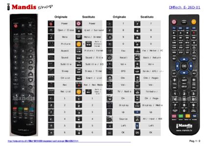 È incluso un documento per aiutarti a utilizzare facilmente il nuovo telecomando, indicando la corrispondenza dei pulsanti.