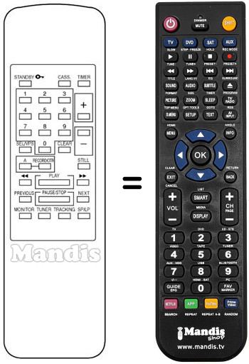 Telecomando che sostituisce l’originale in tutte le sue funzioni. Non si tratta di un telecomando universale ma di un telecomando che sostituisce l’originale. Riceverà il telecomando completamente pronto per il suo funzionamento, deve solo mettere le pile. Non è necessario programmarlo. Le diamo garanzia totale che il telecomando compirà le stesse funzioni del telecomando originale.