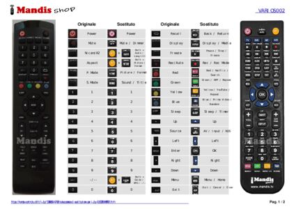 È incluso un documento per aiutarti a utilizzare facilmente il nuovo telecomando, indicando la corrispondenza dei pulsanti.