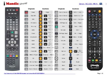 Questo telecomando sostituisce completamente il tuo RC-1193 (30701016200AD) e offre tutte le funzioni dell'originale.
