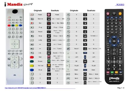 È incluso un documento per aiutarti a utilizzare facilmente il nuovo telecomando, indicando la corrispondenza dei pulsanti.