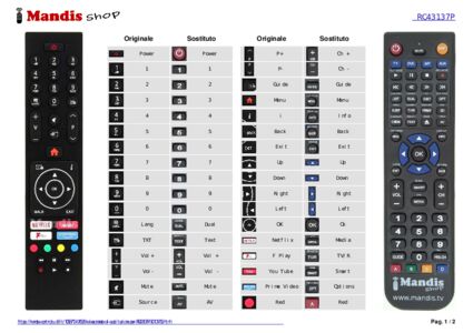 È incluso un documento per aiutarti a utilizzare facilmente il nuovo telecomando, indicando la corrispondenza dei pulsanti.