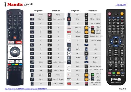 Questo telecomando sostituisce completamente il tuo RC4319P (30100830) e offre tutte le funzioni dell'originale.