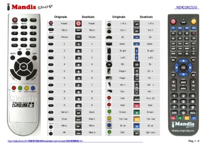 Questo telecomando sostituisce completamente il tuo REMCON1530 e offre tutte le funzioni dell'originale.