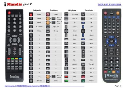 Inizio > Marche > Telecomandi EVERLINE > Telecomando per EVERLINE EV16SD38H