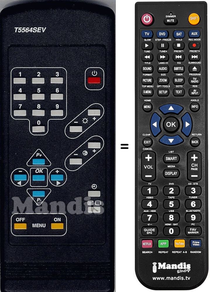 Telecomando che sostituisce l’originale T5564EV in tutte le sue funzioni.