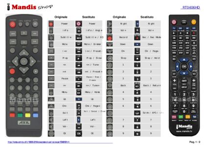 Questo telecomando sostituisce completamente il tuo RT0406HD e offre tutte le funzioni dell'originale.