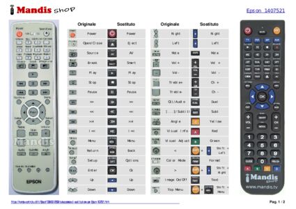 Inizio > Marche > Telecomandi Epson > Telecomando per Epson 1407521