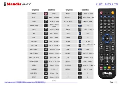 Inizio > Marche > Telecomandi FIRST AUSTRIA > Telecomando per FIRST AUSTRIA TZS DVD