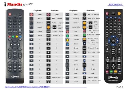 Questo telecomando sostituisce completamente il tuo REMCON2107 e offre tutte le funzioni dell'originale.