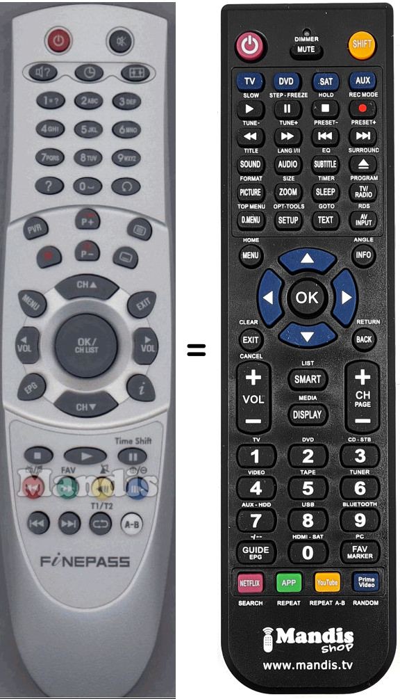 Telecomando che sostituisce l’originale FSR-5000TDR in tutte le sue funzioni.