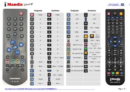 Questo telecomando sostituisce completamente il tuo TP 716 SAT (238000010100) e offre tutte le funzioni dell'originale.
