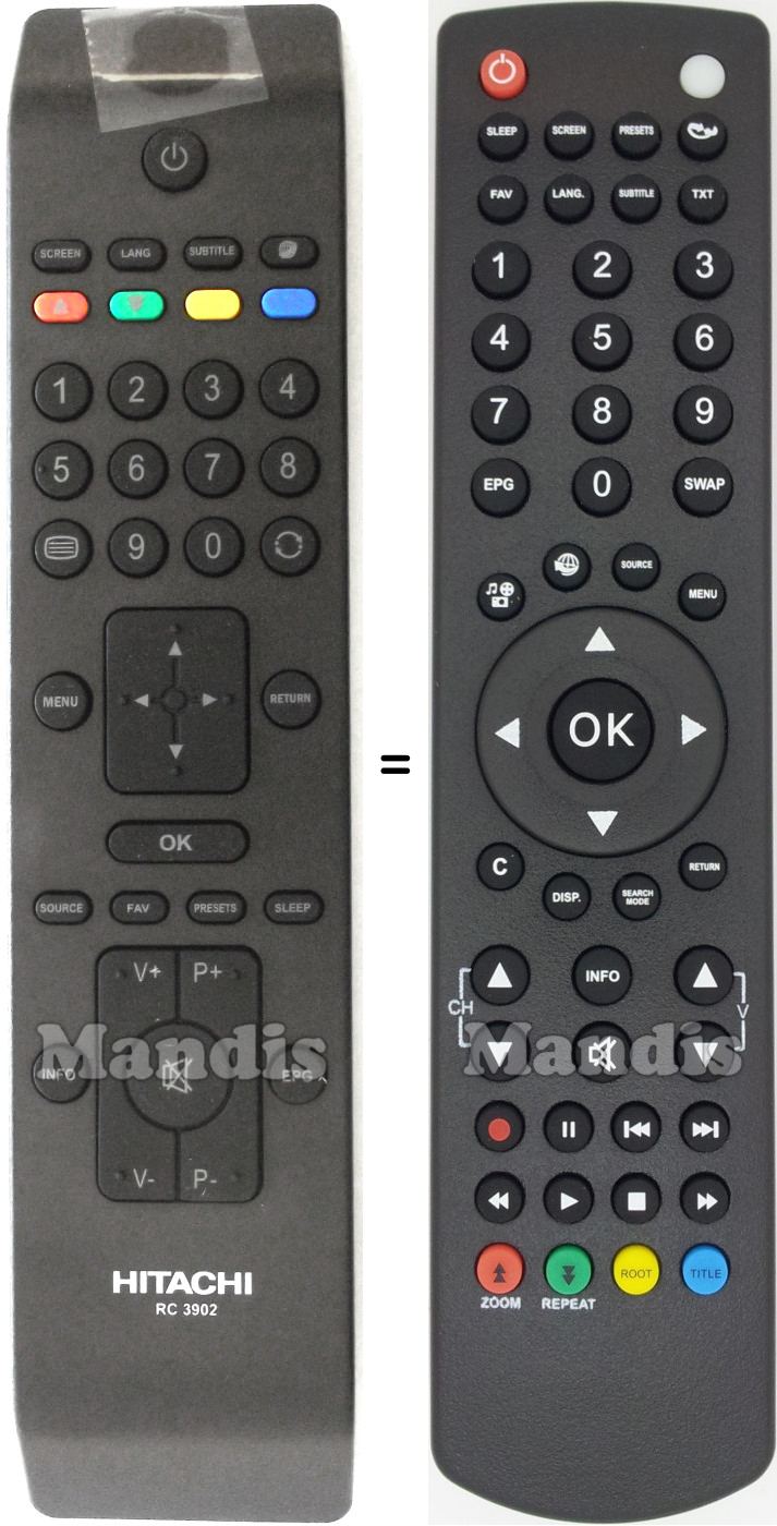 Telecomandi equivalenti che sostituiscono in tutte le funzioni il telecomando HITACHI RC 1910 (30070046):