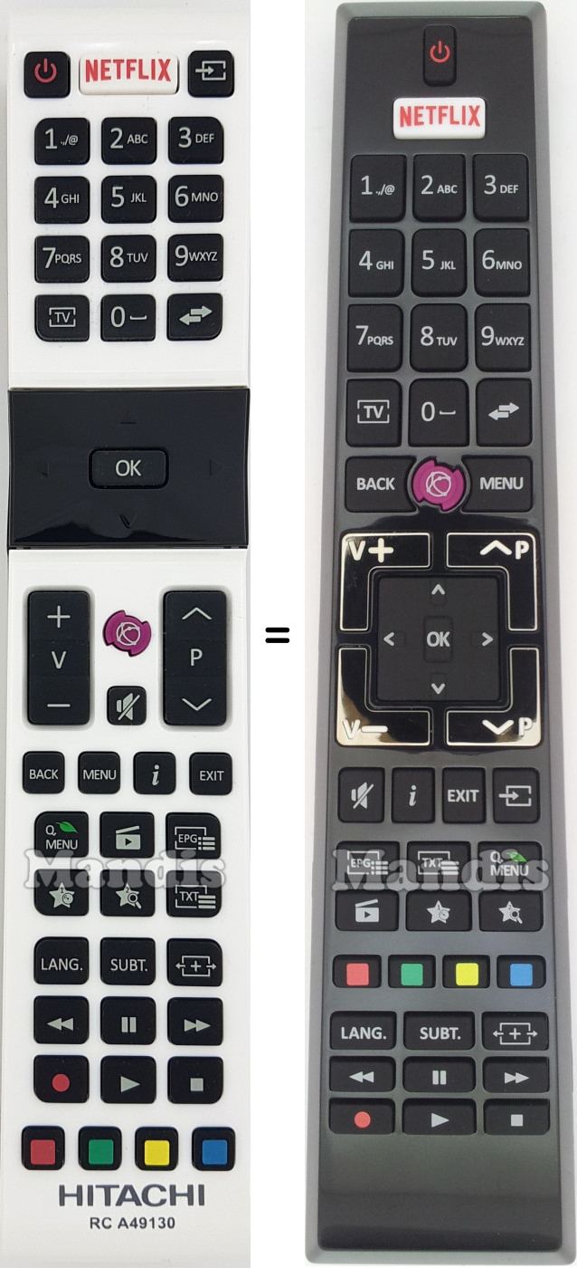 Telecomandi equivalenti che sostituiscono in tutte le funzioni il telecomando HITACHI RCA4995 (23389445):