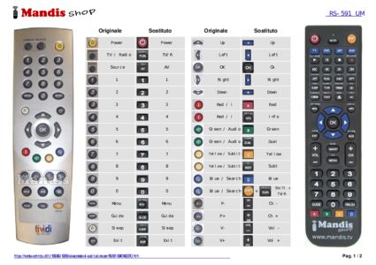 Questo telecomando sostituisce la maggior parte delle funzioni del tuo RS-591 UM (014002770). Non è un telecomando universale, ma una copia con la maggior parte dei tasti e delle funzioni del tuo originale.