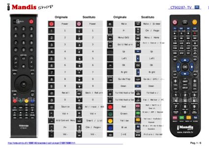 È incluso un documento per aiutarti a utilizzare facilmente il nuovo telecomando, indicando la corrispondenza dei pulsanti.