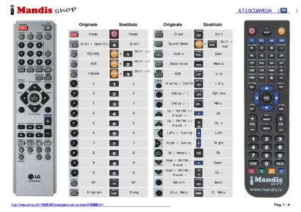 È incluso un documento per aiutarti a utilizzare facilmente il nuovo telecomando, indicando la corrispondenza dei pulsanti.