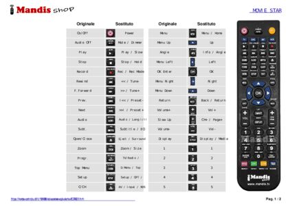 È incluso un documento per aiutarti a utilizzare facilmente il nuovo telecomando, indicando la corrispondenza dei pulsanti.