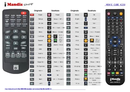Di seguito, vi mostreremo la corrispondenza tra ciascun pulsante del telecomando originale e il pulsante che svolge la stessa funzione sul telecomando di sostituzione. In alcuni casi, potrebbe essere necessario premere il tasto SHIFT prima di premere un altro pulsante per eseguire determinate azioni. Queste funzioni aggiuntive sono spesso poco utilizzate e sono incluse per facilitare la comprensione del telecomando di sostituzione, o perché il telecomando originale ha più pulsanti rispetto al suo equivalente.
