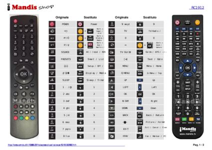 È incluso un documento per aiutarti a utilizzare facilmente il nuovo telecomando, indicando la corrispondenza dei pulsanti.