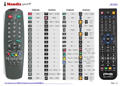 È incluso un documento per aiutarti a utilizzare facilmente il nuovo telecomando, indicando la corrispondenza dei pulsanti.