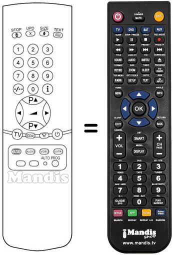 Telecomando che sostituisce l’originale in tutte le sue funzioni. Non si tratta di un telecomando universale ma di un telecomando che sostituisce l’originale. Riceverà il telecomando completamente pronto per il suo funzionamento, deve solo mettere le pile. Non è necessario programmarlo. Le diamo garanzia totale che il telecomando compirà le stesse funzioni del telecomando originale.