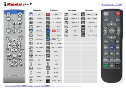 Di seguito, vi mostreremo la corrispondenza tra ciascun pulsante del telecomando originale e il pulsante che svolge la stessa funzione sul telecomando di sostituzione. In alcuni casi, potrebbe essere necessario premere il tasto SHIFT prima di premere un altro pulsante per eseguire determinate azioni. Queste funzioni aggiuntive sono spesso poco utilizzate e sono incluse per facilitare la comprensione del telecomando di sostituzione, o perché il telecomando originale ha più pulsanti rispetto al suo equivalente.