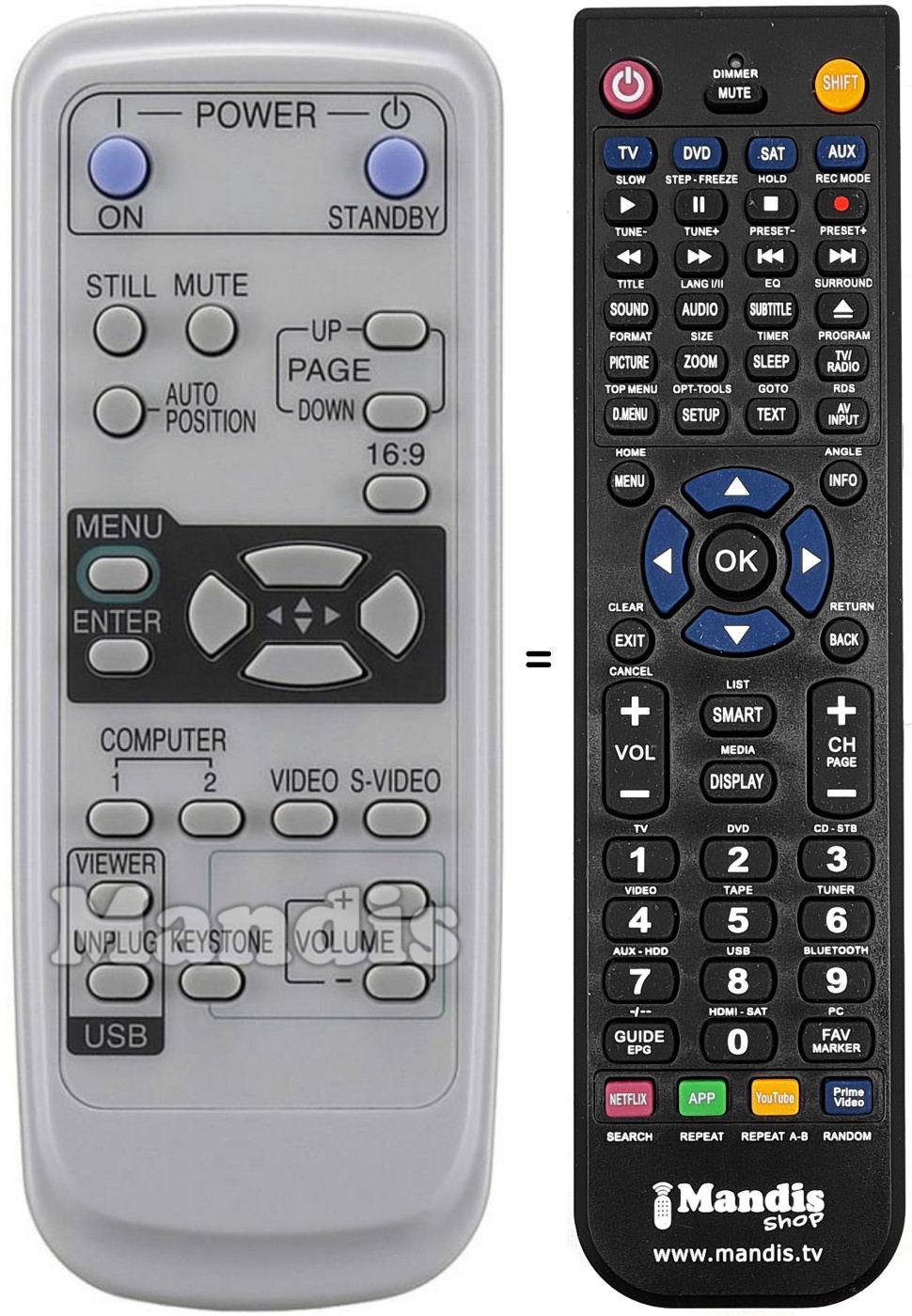 Telecomando che sostituisce l’originale in tutte le sue funzioni.
