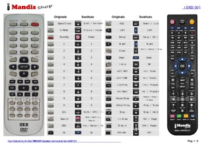Di seguito, vi mostreremo la corrispondenza tra ciascun pulsante del telecomando originale e il pulsante che svolge la stessa funzione sul telecomando di sostituzione. In alcuni casi, potrebbe essere necessario premere il tasto SHIFT prima di premere un altro pulsante per eseguire determinate azioni. Queste funzioni aggiuntive sono spesso poco utilizzate e sono incluse per facilitare la comprensione del telecomando di sostituzione, o perché il telecomando originale ha più pulsanti rispetto al suo equivalente.