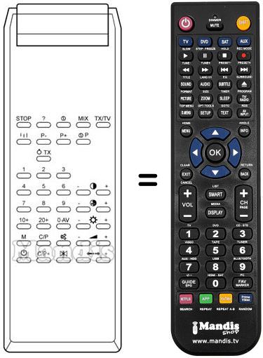 Telecomando che sostituisce l’originale in tutte le sue funzioni. Non si tratta di un telecomando universale ma di un telecomando che sostituisce l’originale. Riceverà il telecomando completamente pronto per il suo funzionamento, deve solo mettere le pile. Non è necessario programmarlo. Le diamo garanzia totale che il telecomando compirà le stesse funzioni del telecomando originale.