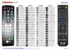 Standby, Subtitle, Audio, Mute, <<, >>, Play / Pause, Stop, I<<, >>I, Menu, Exit, Up / CH+, Down / CH-, Right / Vol+, Left / Vol-, OK, Record, Timeshift, , Recall, 1, 2, 3, 4, 5, 6, 7, 8, 9, 0, , Device, File, Repeat, Teletext, Mosaic, TV/Radio, Info, Red, Green, Yellow, Blue