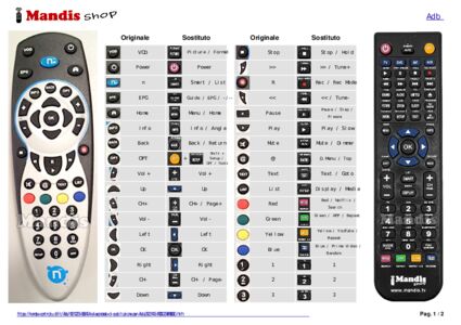 È incluso un documento per aiutarti a utilizzare facilmente il nuovo telecomando, indicando la corrispondenza dei pulsanti.